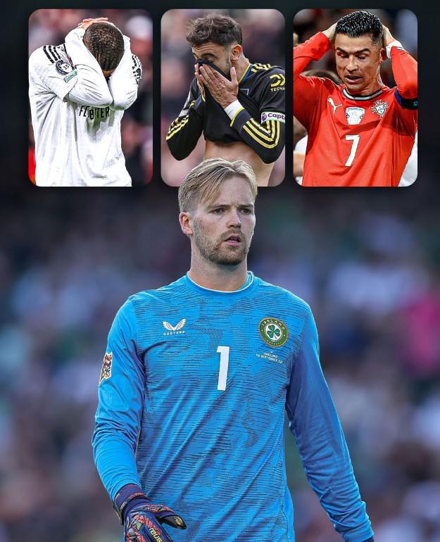 愛爾蘭門將凱萊赫在世預賽(愛爾蘭0-1葡萄牙)撲出C羅的點球,賽后他在社媒曬慶祝照。
